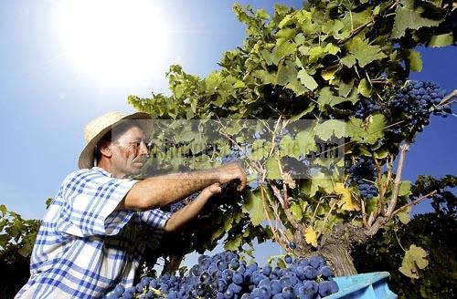 vendangeurs ramassant les grappes de raisins rouge pour cuvée 2009 au coeur des vignes