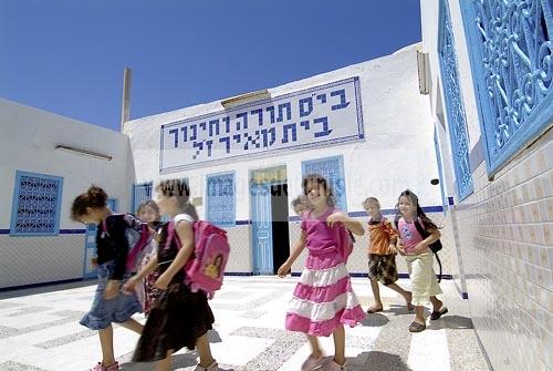 Ecole d'enseignement religieux juifs pour les filles à Hara Kebira le quartier juif dans la banlieue de Houmt Souk sur l'île de Djerba. Les jeunes juifs sur l'île de Djerba suivent à la fois un enseignement religieux (juif) et les cours de l'école publique tunisienne (musulman)
