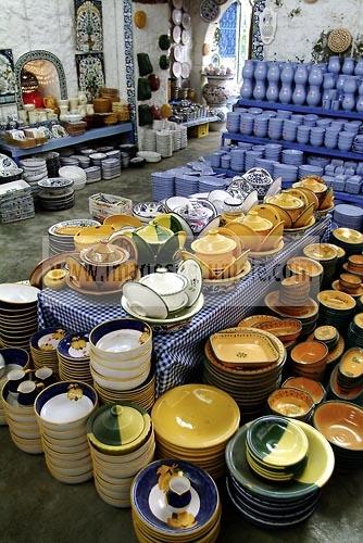Rue principale avec boutiques de poteries et céramiques traditionnelles à Nabeul