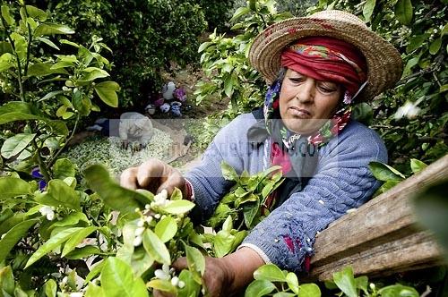 Cueillette de Fleurs d'orangers de Bigaradier destinées à la distillation pour la production de nérobie