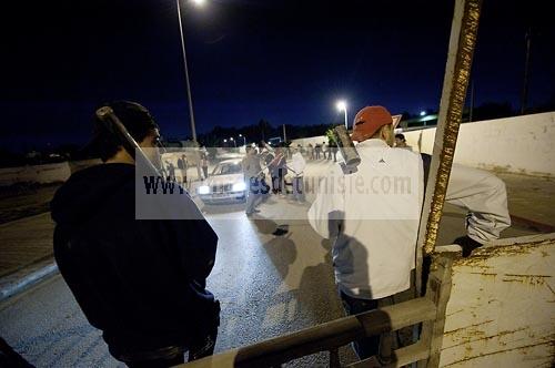 Après le couvre feu de 18h : Barrages et surveillances mises en place par les citoyens en collaboration avec les forces armées dans chaque quartier de Tunis. ici dans les quartiers populaires de Megrine Chaker dans la banlieue sud de Tunis
