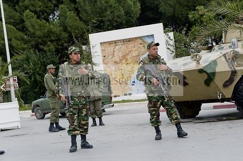 Journée du 19/01/2011 : Journée du 19/01/2011 : Militaires autour du Palais Présidentiel de Carthage dans la banlieue nord de Tunis