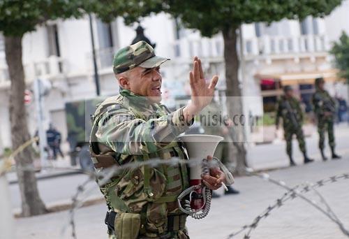 L'armée tunisienne et les militaires devant le Ministère de l'Intérieur sur l'avenue Habib Bourguiba à Tunis