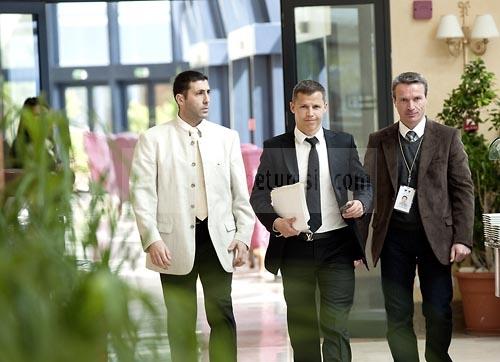 entouré par ses deux gardes du corps.