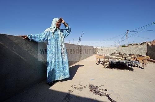 Une mère pleure la mort de sa fille tuée par balles sur la terrasse de sa maison après les affrontements du 3 au 5 juin 2011 dans la ville de Metlaoui