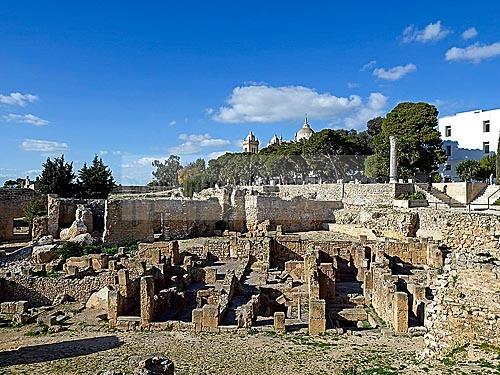 Quartier d'habitations puniques sur la colline de Byrsa àCarthage. Sur le sommet de la colline de Byrsa