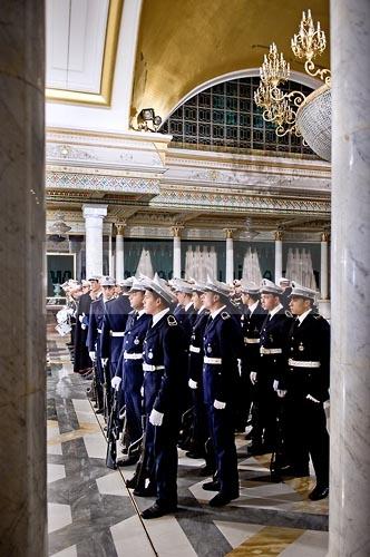 12 mars : dans la salle de cérémonie les corps des forces de l'ordre tunisien se mettent en place pour la cérémonie. Au Palais Présidentiel de Carthage