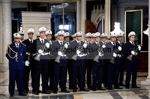se mettent en place pour la cérémonie. Au Palais Présidentiel de Carthage