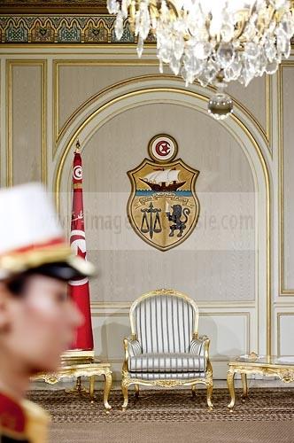 12 mars : fauteuil du Président dans le salon doré au Palais Présidentiel de Carthage