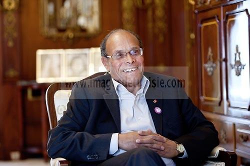 9 mars : Moncef Marzouki dans son bureau lors de notre rencontre avec M. Moncef Marzouki