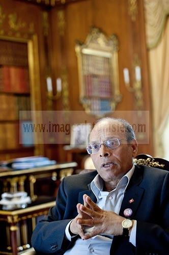 9 mars : Moncef Marzouki dans son bureau lors de notre rencontre avec M. Moncef Marzouki