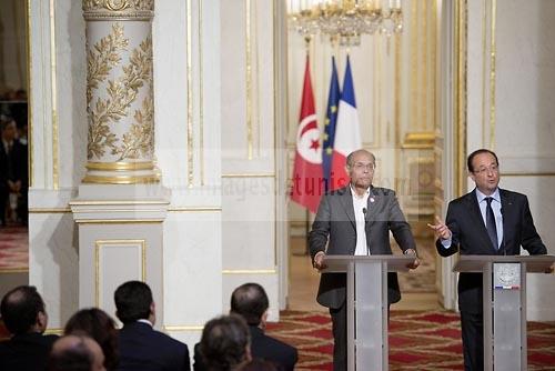 17 juillet : Conférence de presse après l'entrevue des deux présidents àl'Elysée François Hollande et Moncef Marzouki au 1er jour de la visite officielle de Moncef Marzouki