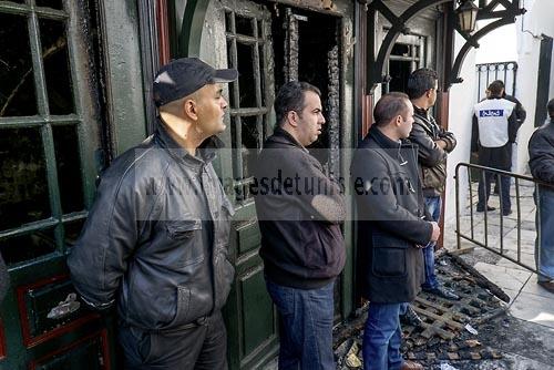 13 janvier : au lendemain de l'incendie criminel du Mausolée de Sidi Bou Saïd El Béji au coeur du village touristique classé au patrimoine mondila de l'UNESCO.