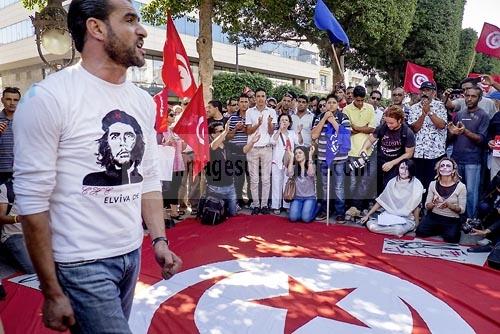quelques milliers de manifestants sont descendus sur l'avenue H. Bourguiba àTunis pour protester contre le gouvernement en place