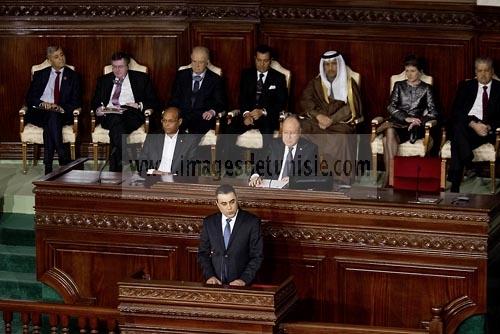 nouveau Premier ministre tunisien dans l'hemicycle de l'ANC. Cérémonie de célébration de la nouvelel constitution tunisienne àl'Assemblée Nationale constituante en pésence des 3 présidents tunisiens