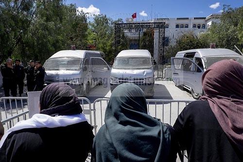 en tête duquel se trouvaient des membres des familles des victimes ainsi que des blessés ont défilé du tribunal d'appel militaire de Bab Saadoun
