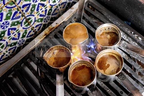 Préparation du traditionnel "Kawa arbi" ou café turc dans les cuisines du Café Sidi Chaabane ou Café des Délices chanté par Bruel