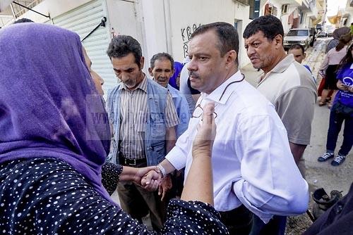candidat tête de liste Tunis 1 aux législatives pour le parti Union pour la Tunisie (UPT) en campagne électorale au marché de Kabaria. Kabaria est un des quartiers les plus deshérités de la banlieu sud de Tunis