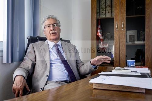 31 octobre 2014 : portrait de Hamma Hammami dans son bureau du parti du Front populaire au lendemain des élections législatives. La bipolarisation de la vie politique tunisienne entre Nida Tounes et Ennahdha ne devrait pas cacher la 3ème place qu'occupent désormais le Front populaire et Hamma Hammami dans le paysage politique tunisien.