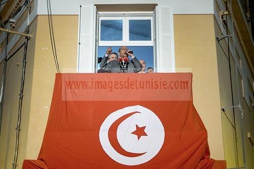 23 décembre 2014 : discours de Moncef Marzouki du balcon de son QG de campagne àl'Ariana