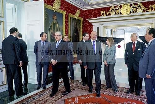 6 février 2015 : L'équipe de ministres et conseillers de la Présidence autour de Béji Caid Essebsi. Deux jours après le vote de confiance du nouveau gouvernement de Habib Essid àl'assemblée avec une large majorité pour de 166 sièges sur 217