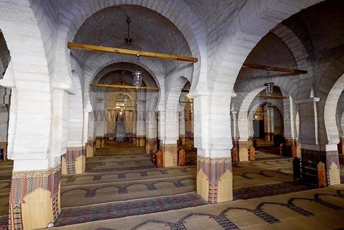 Salle des prières de la Grande mosquée de Sousse dans la medina de Sousse ou la perle du Sahel.