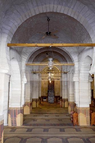Salle des prières de la Grande mosquée de Sousse dans la medina de Sousse ou la perle du Sahel.