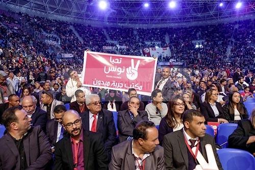 1er mai 2019 : cérémonie de cloture du premier congrès constitutif du nouveau parti Tahya Tounes dans la salle de Radès. Youssef Chahed