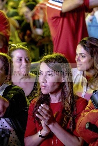 13 septembre 2019 : meeting de cloture de la campagne du candidat en prison Nabil Karoui sur l'avenue Habib Bourguiba àTunis. Plus de 500 partisans sont venus soutenir une dernière fois vanat le premier tour leur candidat toujours emprisonné et toujours en tête des intentions de vote. Salwa Smaoui