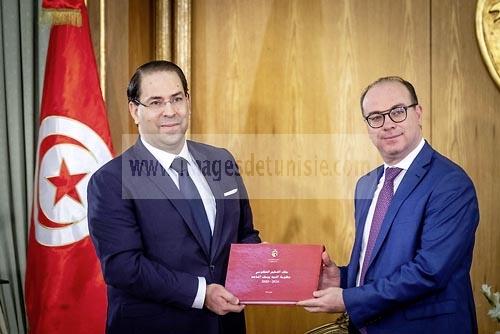 fraichement investi par le parlement. La cérémonie que c'est déroulé en présence des memebres des deux gouvernements commença par un discours de Youssef Chahed puis de Elyes Fakhfakh.