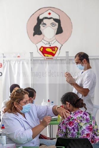 banlieue de Tunis. Suite àl'arrivée massive de dons en vaccin